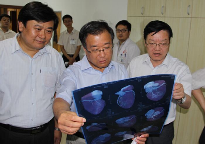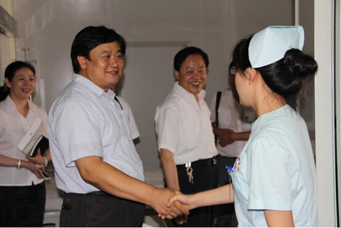 2014年8月21日,延安大學(xué)校長崔智林、延安大學(xué)醫(yī)學(xué)院院長韓繼明、副院長王璐一行三人來到延安大學(xué)咸陽醫(yī)院檢查指導(dǎo)工作。在董事長張群的陪同下,崔校長一行分別視察了檢驗(yàn)科、功能科、體檢科、CT室、自動(dòng)化中心藥房、心臟病科、神經(jīng)內(nèi)科VIP病區(qū)、并在心臟導(dǎo)管室觀摩了一例心臟介入手術(shù),當(dāng)來到心臟病二科時(shí),延安大學(xué)實(shí)習(xí)學(xué)生把崔校長一行團(tuán)團(tuán)圍住,交談中,同學(xué)們感謝學(xué)校和醫(yī)院為他們提供了這么好的實(shí)習(xí)場所,帶教老師們認(rèn)真負(fù)責(zé),院方盡可能的為他們創(chuàng)造良好的學(xué)習(xí)和生活條件,在歷年的聯(lián)考和研究生考試中都取得了驕人的成績。崔校長聽到后非常欣慰并鼓勵(lì)同學(xué)們好好學(xué)習(xí),把延安精神帶到學(xué)習(xí)和工作當(dāng)中去,爭取更多的深造機(jī)會(huì),為祖國醫(yī)學(xué)事業(yè)的發(fā)展貢獻(xiàn)自己的力量。