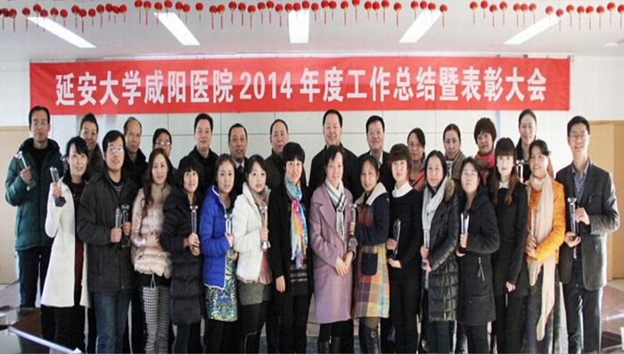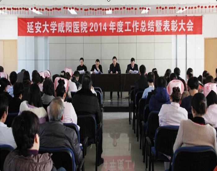 延安大學(xué)咸陽醫(yī)院2014年度工作總結(jié)大會暨表彰大會于2015年1月20日下午2點(diǎn)在綜合樓四樓會議室舉行。董事長張群、黨委書記李衛(wèi)軍、院長康彥文及全體院領(lǐng)導(dǎo)出席會議,全院共300余名員工參加。會議由常務(wù)副院長張海濤主持。會議開始,康彥文院長對2014年度工作進(jìn)行總結(jié),安排部署2015年工作。隨后李衛(wèi)軍書記宣讀2014年度受上級表彰的先進(jìn)集體、先進(jìn)個人和醫(yī)院表彰文件,最后舉行了先進(jìn)集體、先進(jìn)個人頒獎儀式。