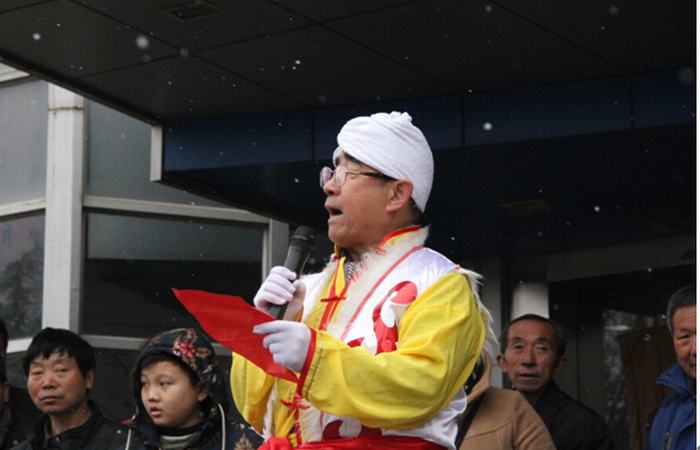 秧歌隊領隊宣讀元宵賀詞,送上對醫院發展美好的祝愿。