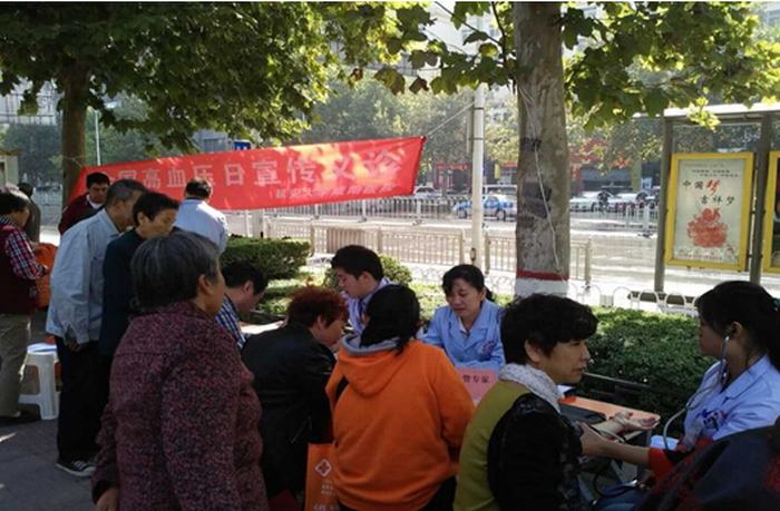 醫務人員在活動現場懸掛橫幅、設置展板、發放各類宣傳資料,吸引著大批群眾圍觀。他(她)們除現場義務測量血壓外,還對居民關心的“高鹽飲食”、“如何預防高血壓”等健康問題進行現場解答,并詳細地講解了高血壓病的病因、診斷標準、臨床表現、遠期危害以及治療方法,引導廣大群眾要重視高血壓的嚴重危害性,增強自我保健意識,積極預防和治療。醫務人員認真、熱情的服務態度受到當地群眾的一致好評,更有群眾感嘆在家門口就能看病,能學到醫學知識。