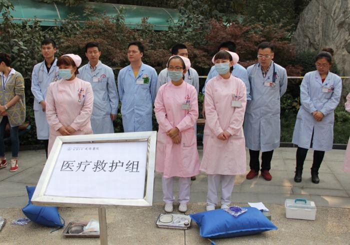 2015年10月21日延安大學咸陽醫院在醫院外科樓地震疏散演練的基礎上進一步舉行了內科樓、西樓、口腔樓、醫技樓、綜合樓聯合地震疏散演練,本次地震疏散演練繼續由我院應急工作領導小組組織,設置了導演組,下設搶險疏散組、醫療救護組、后勤保障組、通訊聯絡組四個應急小組。參演部室增加至五十多個,參加醫務人員和患者人數增至800名余名。全院未參演科室主任和護士長(或資深護士)現場觀摩。