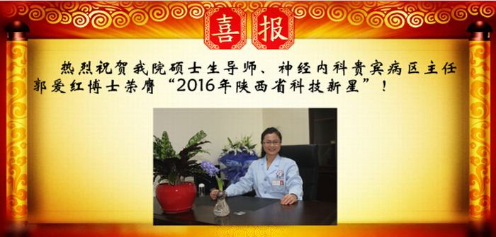 熱烈祝賀我院碩士生導師、神經內科貴賓病區主任郭愛紅博士榮膺“2016年陜西省科技新星”!