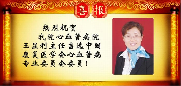 熱烈祝賀我院心血管病院王顯利主任當選中國康復醫學會心血管病專業委員會委員!