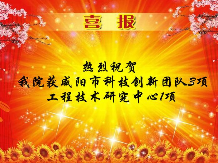 熱烈祝賀我院獲咸陽市科技創新團隊3項,工程技術研究中心1項