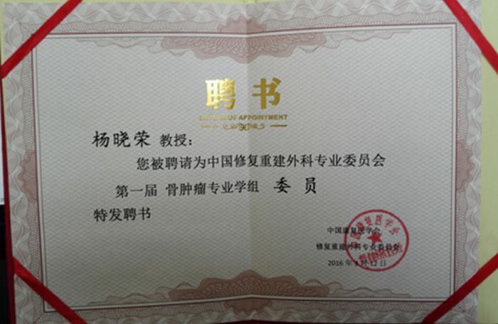 3月12日,中國修復重建外科專業委員會骨腫瘤學組委員會在西安召開。我院手足外科主任楊曉榮同志成功當選“中國修復重建外科專業委員會第一屆骨腫瘤專業學組委員”!