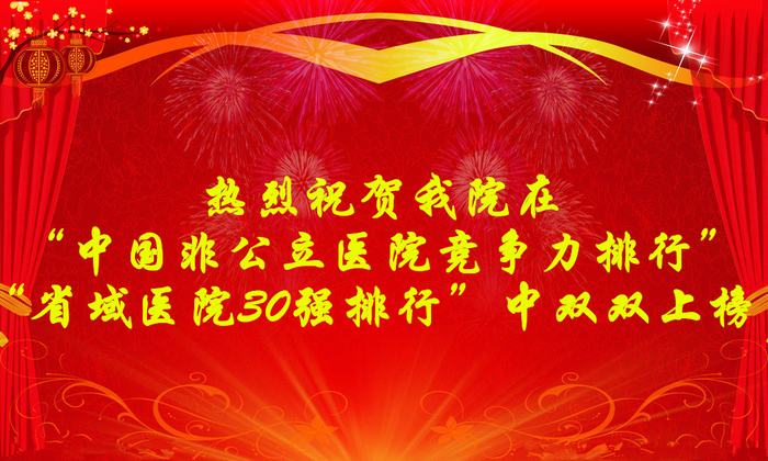 熱烈祝賀我院在“中國非公立醫院競爭力排行”“省域醫院30強排行”中雙雙上榜