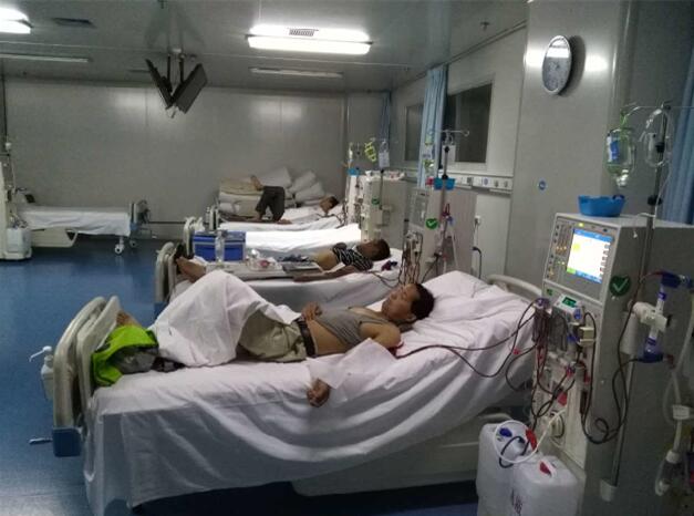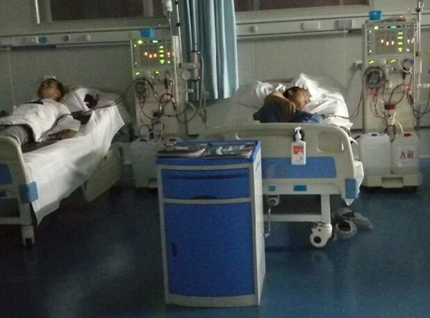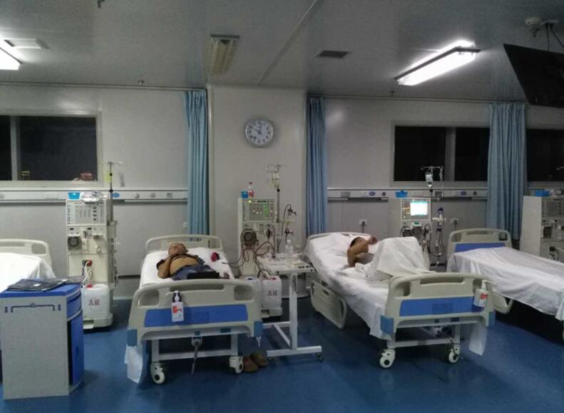 為提高透析病人治療質量,改善透析病人慢性并發癥,延安大學咸陽醫院腎內科吸收國內外先進技術,于近期開展夜間透析治療。夜間透析是將透析時間安排在夜間,同時透析時間延長至6-8小時,透析結束后,病人在病區休息,至次日凌晨返回家中。夜間透析起源于國外家庭透析治療,由于透析時間安排在夜間,不會占用白天時間,病人在治療結束后可以自由安排日間時間,為病人回歸社會提供了極大便利。此外,國內外研究觀察發現,夜間透析治療不僅可以更加充分清除毒素、水分,而且由于治療時間延長可以充分清除磷等常規透析清除率低的毒素;夜間透析治療的病人不僅降壓藥物減少,高血壓控制改善,而且提高了對促紅素的敏感性,促紅素使用量減少;同時充分的水分清除促進心肌肥厚改善,心血管合并癥減輕;由于高磷血癥改善,病人一般不必限制飲食,營養狀態好,總體預后均明顯優于日間常規透析病人。