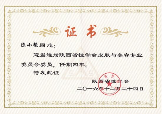 近日,從陜西省性學(xué)會(huì)獲悉,我院皮膚科陳小艷同志被聘為陜西省性學(xué)會(huì)皮膚與美容專業(yè)委員會(huì)委員。