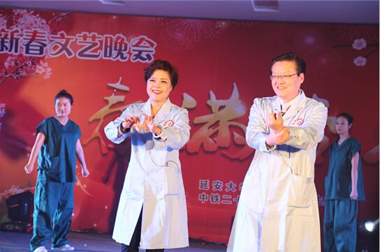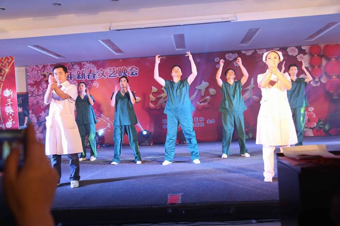 延安大學咸陽醫院院領導一直重視手衛生的宣傳及督導落實并以身作則,從自身做起,支持參與到手衛生宣傳中來。1月20日,手衛生舞蹈情景劇走上2017年我院春節聯歡晚會的舞臺。康彥文院長親自領舞,院感辦、外科系統醫護人員共同參與的生動新穎、寓教于樂的節目表現形式,將晚會氣氛推向高潮。康院長在晚會現場倡議所有參會嘉賓行動起來,嚴格執行手衛生,最后,全場觀眾群起呼應高呼手衛生口訣:內、外、夾、弓、大、立、腕。