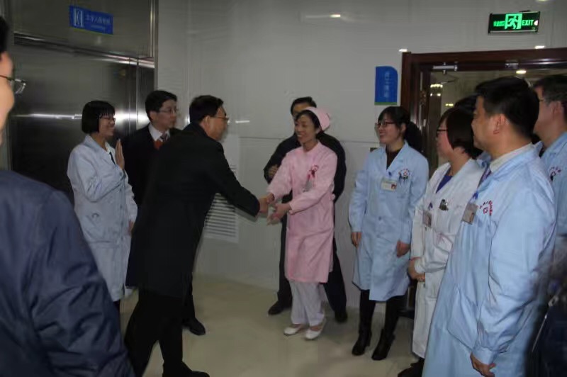 春節前夕,咸陽市政府孫亞政副市長來到我院親切看望和慰問了醫護人員,同行的還有市政府何小鵬副秘書長,市衛計局馬劍副局長等上級領導。在我院康彥文院長等院領導的陪同下,孫亞政副市長等一行來到我院腦血管病院看望了忙碌在臨床一線的工作人員,對我院為創建健康咸陽所取得的成績給予了充分的肯定,對醫護工作者們為咸陽人民的健康事業所做的付出表示感謝,并向他們轉達了市政府對他們的新春美好祝福。康彥文院長代表全院對市上領導的關心和支持表示衷心的感謝,我院醫護工作者們對市政府領導的關懷感到無比的溫暖,紛紛表示會努力做好本職工作,堅守工作崗位,切實做好節日期間的醫療保障,確保全市人民度過一個健康幸福、平安快樂的春節。
