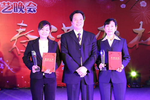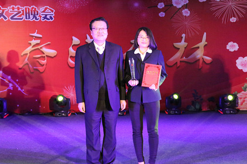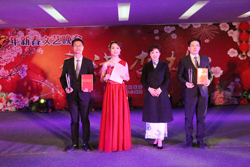 亓梅主席為2016年傳播溫暖獎(jiǎng)“護(hù)士沒(méi)吃飯”報(bào)道組李鵬、劉歡、王丙聚頒獎(jiǎng)
