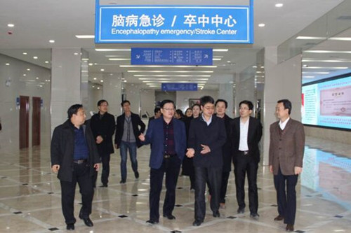巢葆華處長先后視察了我院急診科、檢驗科、醫學影像中心、卒中中心等科室,對我院高度重視腦卒中篩查與防治工作,短期內能投入大量資金扶持相關專科發展、購置篩查與防治醫療設備,進一步理順篩查與干預項目工作模式、大力開展宣教和義診活動、腦卒中相關新技術新業務得到快速發展等方面取得的成績表示贊賞。巢葆華處長認為醫院能夠廣泛利用報刊、網絡、微信等新興媒體平臺,充分利用由本院承辦的各級各類學術會議、社區義診等機會,深入群眾中開展腦卒中防治宣傳與健康教育。希望我院再接再厲,在腦卒中篩查與防治網絡醫院建設、綠色通道建設、腦卒中急診溶栓、頸動脈內膜剝脫術、神經內外科介入手術干預等腦卒中防治核心技術推廣應用等工作上取得更好的成績,把腦卒中篩查與干預這項既利國利民,又利于醫院發展的好事辦好辦實。
