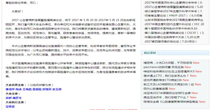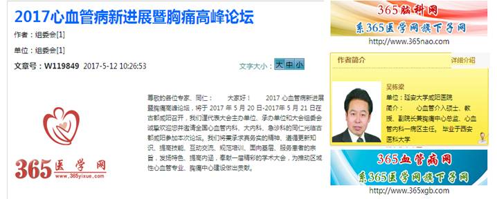 近日,從365醫學網獲悉,我院“2017 心血管病新進展暨胸痛高峰論壇”獲得365醫學網持續報道與大力支持。