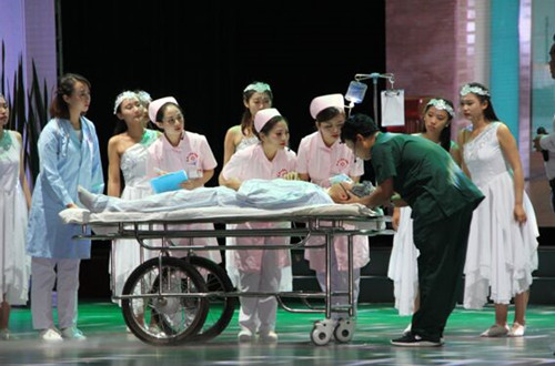 情景劇《守望》是根據在我院發生的真實故事改編而成,講述的是13名醫護人員經過6個小時的分秒必爭,終于將一名70多歲的老人從死亡線上拉回來的故事,老人在昏迷之際隱約聽到家屬與醫護之間的交流,醒來的第一件事竟是在紙上寫下了“護士沒吃飯”五個字。事情發生后,全國各大媒體爭相報道,事跡感動了億萬人。節目通過朗誦與情景相結合的藝術表現形式,演繹醫患關系漸漸回歸到人性的本真。我院愛心藝術團精彩的表演引起了臺下觀眾的強烈共鳴,感動了在場的千余名觀眾,掌聲經久不息。