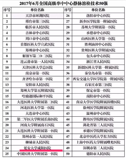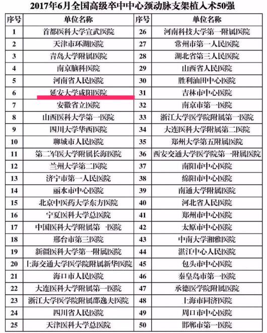 --延安大學咸陽醫院入圍高級卒中心100強