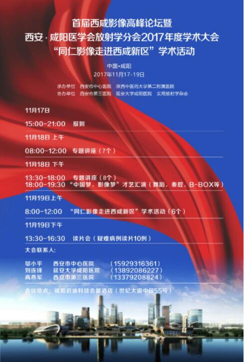 由西安醫學會放射學分會、咸陽市醫學會放射學分會主辦,我院等5個單位聯合舉辦的首屆西咸影像高峰論壇暨“同仁影像走進西咸新區”將于2017年11月17-19日在陜西省西咸新區召開。