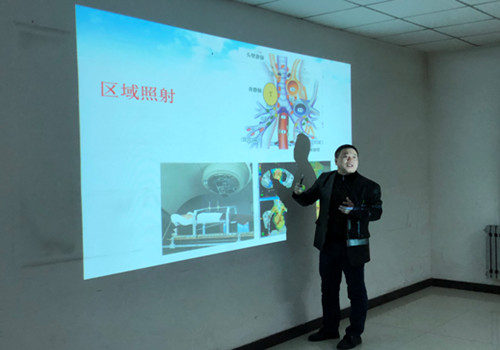 交流會在放療科二樓學術廳召開。梁主任為大家介紹了國內腫瘤流行現狀、腫瘤發病率及主要治療手段等。從專業角度對我院放療科目前常規開展的三維適形與立體定向放療技術進行了分析。圍繞我院現有的兩種放療設備直線加速器和陀螺刀,闡述了各自特點、優越性、適應癥等。重點討論了直線加速器與陀螺刀如何配合才能發揮兩臺設備的最大治療優勢,讓患者受益。并列舉了唐都醫院放療科近十年以來兩臺設備結合治療的一些經典病例。