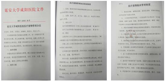 遵照《咸陽市衛生和計劃生育局關于上報2017年度醫療廢物處置明細的通知》(咸衛函[2018]50號)、《咸陽市衛生和計劃生育局關于開展醫療廢物管理與整改工作督導檢查的通知》(咸衛函[2018]113號)文件精神,我院在保持創“三甲”院感管理業已取得優良成績的基礎上,用新標準嚴格要求,再次梳理醫療廢物管理的各個環節,查漏補缺,做好各相關部門自查和職能部門的督查工作。