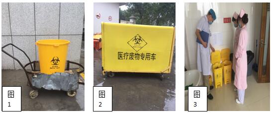 (圖1為整改前的醫療廢物轉運車,圖2為整改后的醫療廢物轉運車,圖3為醫療廢物督導檢查)