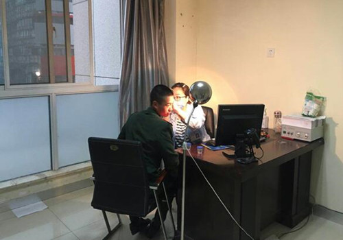 (醫(yī)務(wù)人員對武警官兵進(jìn)行五官檢查)
