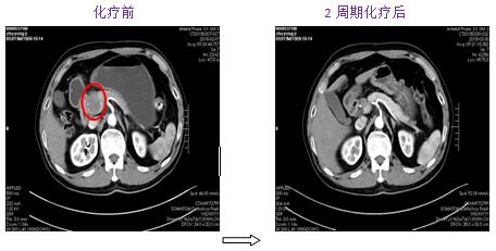 圖1. 2周期化療后胰腺區(qū)占位基本消失