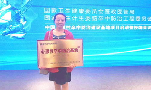 我院被授予首批“中國心源性卒中防治基地”建設單位