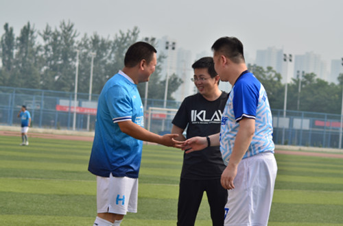 6月17日上午,咸陽師范學院足球場經過前日的小雨洗刷,綠草茵茵,格外清新。得力于天公作美,當日預報的小雨也悄然而去,云開霧散,為比賽創造力絕佳的條件。早8時許,著裝整齊的雙方隊員陸續到場,咸陽師范學院文傳院黨委副書記李永濤、延安大學咸陽醫院辦公室負責人李鵬,隊員家屬和部分球迷50多人前來助威,讓清晨的球場熱鬧非凡。考慮雙方隊員均為在職人員,年齡偏大,加之對方許多球員遠道而來,經商議將整場比賽分為上、中、下三節,每節30分鐘。