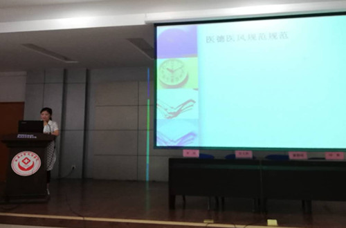 黨文婷總護士長就《實習生管理規定及相關護理核心制度》分別從法律法規、我院護理核心制度、實習生要求及規范、請假管理規定等方面進行講解,要求同學們嚴格執行護理核心制度,認真遵守醫院相關規定;護理部奉明老師從《護士執業禮儀與醫德醫風規范》中教會大家如何成為一名講文明、懂禮貌、有內涵、高素質的優秀護士;羅建利護士長針對《護患溝通技巧》闡述了護患溝通的方法、技巧、時機,指導大家在今后的臨床工作中如何實施有效的護患溝通;董朝妮護士長對于《如何更好的進行臨床護理實習》結合自身工作學習經驗,教會大家在有限的時間內學到更多的知識,為今后走上護理崗位奠定基礎;劉敏護士長從《護理工作安全隱患》中圍繞患者十大安全目標,重點對護理實習生在實習過程中易出現的問題、防范措施等方面進行講解。