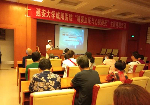 為了提高健康教育質(zhì)量,為了廣大患者能更好的預(yù)防疾病,延安大學(xué)咸陽(yáng)醫(yī)院心血管病院制定了每月一主題健康教育宣傳活動(dòng)計(jì)劃。2018年7月11日下午16時(shí),新的一期“清晨血壓與心肌梗死”主題宣講活動(dòng)在心血管病院20樓第一學(xué)術(shù)廳舉行,會(huì)議由張紅護(hù)士長(zhǎng)主持,醫(yī)護(hù)人員和心臟科病人及其家屬100多人參加會(huì)議。