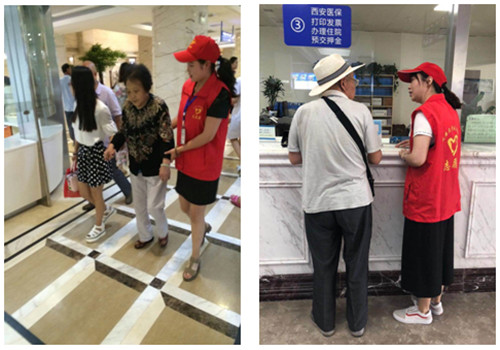 今天是來自陜西托普信息技術學院的石瑋同學在我院做志愿者服務的第21天,她和往常一樣戴著小紅帽,穿著印有延安大學咸陽醫院志愿者標識的“紅馬甲”,耀眼的站在外科大樓導醫臺前開始她今天的服務。