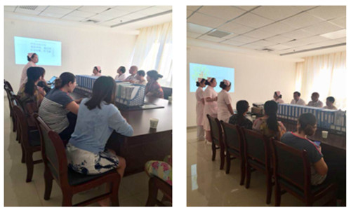 俗話說;傷筋動骨100天,骨折后三個月也是最佳黃金鍛煉恢復期。為使患者及家屬在此次培訓中,更加專業地了解并掌握功能鍛煉及預防并發癥的方法,她們利用休息時間,多方查找搜集資料,制作了圖文并茂、淺顯易懂的PPT。 PPT中還插入了以往患者重視規范功能鍛煉,而取得良好效果的視頻,以往患者的現身說法使在院患者對如何規范功能鍛煉,重視并發癥預防更加有信心。從而使枯燥抽象的專業知識變得更加具有說服力,更加生動形象。此次培訓,護士長將3名責任護士全部從臨床抽出,并邀請1名主治醫生參加。參加座談培訓的病人及家屬共計26人。