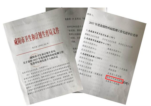 近日,咸陽(yáng)市衛(wèi)生和計(jì)劃生育局下發(fā)文件對(duì)2017年度食源性工作先進(jìn)單位進(jìn)行了表彰,延安大學(xué)咸陽(yáng)醫(yī)院榮獲“2017年度食源性疾病監(jiān)測(cè)工作先進(jìn)單位”榮譽(yù)!