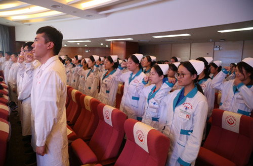 隨后,所有學生和學員莊嚴宣誓:“健康所系,性命相托”響徹會場,浸入心扉。他們的宣誓,展現了新一代醫護人員的熱情,表達了為人民生命健康而不懈努力的堅定決心,為祖國醫療衛生事業奉獻終身的矢志不渝!