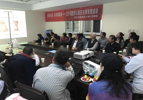 現(xiàn)今隨著生活水平的提高工作,生活壓力的增大,患有心腦血管疾病的人越來越多,心臟疾病是威脅人類生命健康的頭號殺手,為提醒人們的重視,世界心臟聯(lián)盟確定了每年一次的世界心臟日,2018年世界心臟日主題“My heart,your heart”,為響應(yīng)世界主題,我科于9月28日下午開展以“關(guān)愛心臟,從我做起”為主題的宣傳活動,本次活動主講人分別是心內(nèi)vip責(zé)任總:王雅寧,主管護(hù)師:魏繼云;在院患者及家屬共30余人聆聽了講座。