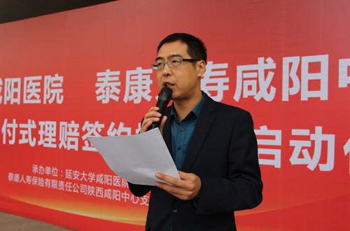 10月16日上午10:00,延安大學(xué)咸陽醫(yī)院腦血管病醫(yī)院樓前集聚著醫(yī)療、護(hù)理和商業(yè)保險(xiǎn)代理人方隊(duì)。在這里,精誠醫(yī)療集團(tuán)財(cái)務(wù)總監(jiān)呂輝、延安大學(xué)咸陽醫(yī)院董事長(zhǎng)李衛(wèi)軍、泰康人壽保險(xiǎn)公司陜西分公司副總經(jīng)理齊燕蕓、咸陽中支總經(jīng)理李寶斌、延安大學(xué)咸陽醫(yī)院院長(zhǎng)助理沙寧與大家共同見證“健保通”直付式理賠在延安大學(xué)咸陽醫(yī)院正式啟動(dòng)。