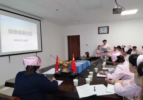 2018年10月23日下午,延安大學咸陽醫院神經內科系統組織了護理方面的疑難病歷討論,此次會議是按照護理部的要求,為了更好的規范科室疑難病歷討論,提高護理人員專業知識,解決護理工作中的疑點和難點,從而更好的為患者服務。會議在神經內科三病區示教室召開,宋春蘭總護士長主持,神經內科各病區護士長及神經內科三病區護士參加,共計二十余人。