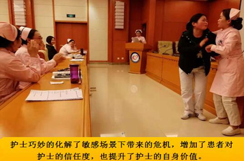 本次“責任護士工作坊”一改傳統(tǒng)的你說我聽,而是選擇了你演我看。通過別開生面的情景劇來展現(xiàn)工作中遇到的問題及處理方法,讓更多年輕護士從中學(xué)習(xí)經(jīng)驗,以便更好的服務(wù)于患者。對接待入院、健康教育、出院辦理及敏感場景下的溝通技巧做了全面的展示。各科護士可謂是使出了渾身解數(shù),將日常工作中的點點滴滴表現(xiàn)的淋漓盡致,體現(xiàn)了護士對此次活動的高度重視。