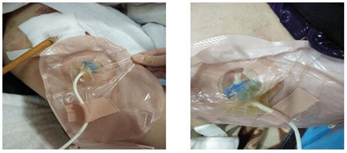 經過反復的討論和一次次的試驗后,實踐總結出了造口袋的最佳使用方法:使用一件式造口袋,將造口袋底盤口的直徑,裁剪出與引流管處傷口一致的形狀,將引流管的外接口端從造口底盤穿進造口袋,經造口袋正面剪的小孔穿出造口袋,用水膠體薄片密封造口袋的縫隙也起到了固定引流管的作用,最后再用3M膠帶進行二次固定。