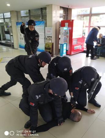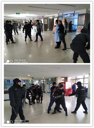為確保春節(jié)假期醫(yī)院安全穩(wěn)定,提高醫(yī)務(wù)人員安全防范意識(shí),增強(qiáng)保衛(wèi)人員應(yīng)急處事能力和維護(hù)醫(yī)院財(cái)產(chǎn)安全。2019年1月31日下午我院保衛(wèi)科聯(lián)合警務(wù)工作站,在急診科診室開(kāi)展一次涉醫(yī)反恐演練,為確保真實(shí)性,保衛(wèi)科長(zhǎng)和警務(wù)工作站蔡教導(dǎo)和陳警官雙方協(xié)商并擬定方案,沒(méi)有事前通知,沒(méi)有事前準(zhǔn)備,是對(duì)保衛(wèi)科和急診科、導(dǎo)醫(yī)臺(tái)、收費(fèi)室的快速反應(yīng)能力、應(yīng)急處事能力和思想承受能力的多方面檢驗(yàn)。