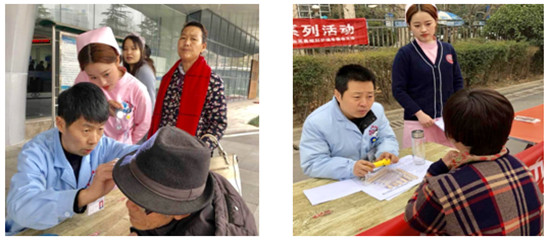 當日上午9點,耳鼻咽喉科在本院大門口,車輛往來如織的文林路旁,流動人口密集處,設立桌椅,拉起“愛耳,音亮,鼻腔通系列活動”及印有本次活動主題的橫幅,向來往行人,進行免費義診公益活動。我院耳鼻咽喉科主任張立剛親自坐陣,帶領科室醫務人員為市民進行免費檢查咨詢及發放宣傳資料等。
