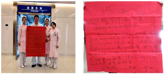 3月14日早上一上班,泌尿外科又收到了一封患者和家屬的感謝信。“加上這封,已經是今天早上收到的第二封了。”泌尿外科強永春主任說。