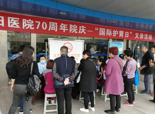 喜迎建院70周年,為了更好的服務廣大群眾及患者,加強人們對胃部健康的關注,2019年4月9日,在第14個“國際護胃日”來臨之際,延安大學咸陽醫院消化內科在內科樓門診大廳外開展了大型健康義診宣傳活動。