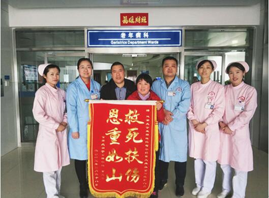 回到家鄉(xiāng)后,患者及家屬仍不忘感激之情,特制了一面錦旗寫到:“救死扶傷,恩重如山”。原準(zhǔn)備從甘肅寄過來,后他們改變了主意,夫妻倆專門趕了近千里的路程來到醫(yī)生面前將錦旗送出!