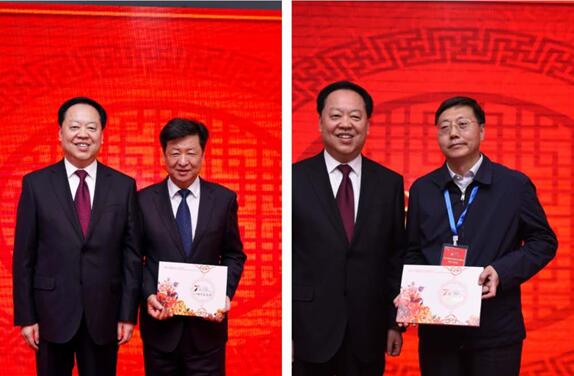 精誠醫(yī)療集團(tuán)董事局主席張群為支持醫(yī)院發(fā)展的上級領(lǐng)導(dǎo)和醫(yī)院歷任老領(lǐng)導(dǎo)分別頒發(fā)“七十華誕感恩紀(jì)念章”和“七十華誕發(fā)展功勛獎”