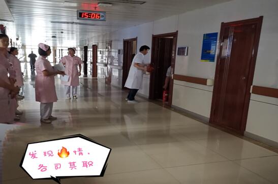 當(dāng)發(fā)現(xiàn)火情火災(zāi)警報(bào)響起,全科醫(yī)護(hù)人員第一時(shí)間及時(shí)到達(dá)現(xiàn)場,科主任、護(hù)士長、辦公班。責(zé)護(hù)班、治療班,值班醫(yī)師所有人員各司其職,科主任立即查看患者并協(xié)助滅火,負(fù)責(zé)現(xiàn)場總指揮。護(hù)士長為副總指揮,整體協(xié)調(diào),責(zé)任護(hù)士關(guān)氧源、轉(zhuǎn)移患者及家屬;辦公護(hù)士外聯(lián)所有相關(guān)部室;治療護(hù)士關(guān)電源保護(hù)儀器、看護(hù)患者;值班醫(yī)生熟練地拿起滅火器,按照滅火步驟和方法進(jìn)行撲火……。保衛(wèi)科人員火速抵達(dá)火災(zāi)現(xiàn)場進(jìn)行救援。