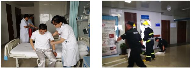 16點30分,演練拉開帷幕。在值班護士發現火情后,立即啟動應急預案,在劉勇責任總醫師和羅建利護士長統一指揮下按職責分工迅速展開行動。全體醫務人員協助科室患者按疏散路線有秩序地撤離,到達指定地點匯合。同時,現場滅火救援、人員疏散、醫療保障、人員救護、信息協調等一系列工作緊張而有序開展。接到火警電話后,保衛科人員也迅速趕到,撲滅明火,確?;鹎榭煽亍?/FONT>