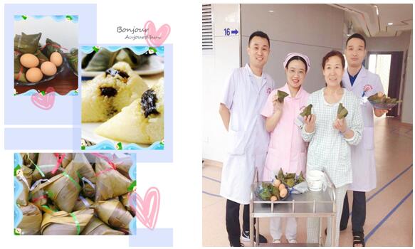 端午節(jié)前一天早上,護(hù)士長杜愛榮和科室醫(yī)生,就用治療車推著護(hù)士馮敏妮凌晨四點就起來煮好的粽子和艾葉煮蛋來到病房。患者們在病床上收到醫(yī)護(hù)人員送來的粽子和節(jié)日的祝福,喜悅之情溢于言表。