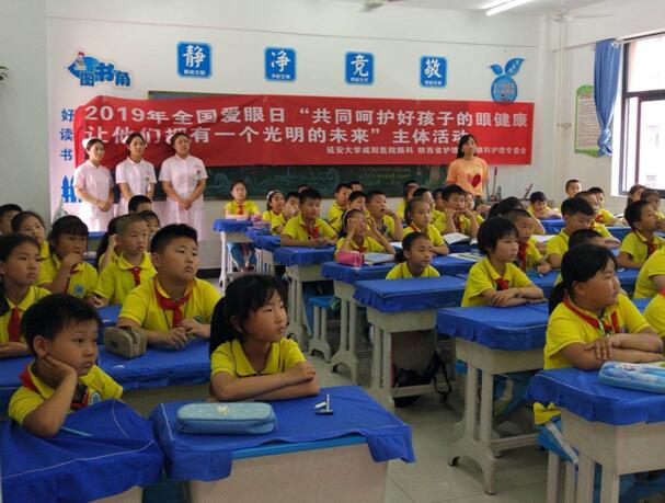 2019年6月6日是第24個全國“愛眼日”。為了進一步普及科學用眼知識,提高青少年的視力健康水平,延安大學咸陽醫院眼科同去年一樣,醫護人員一行7人,走進校園。在渭城區文林學校教室,舉辦了以“共同呵護好孩子的眼健康,讓他們擁有一個光明的未來”為主題的宣傳教育活動。