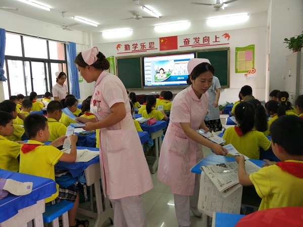 講座結束后,眼科醫護人員又給孩子們普查了視力。并發放了“影響近視的因素、如何預防近視、近視了應該怎么辦”等小常識的宣傳單,約500余份。