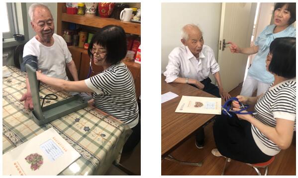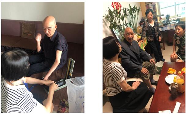 在走訪慰問中,我們與老干部們促膝長談,詳細詢問了每一位老干部的身體、生活情況。霍院長親自為每位退休老干部進行了身體狀況評估、量血壓、聽診,同時祝老干部們端午安康。